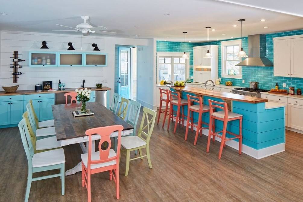 10. Хотя синее оформление не способствует аппетиту, такой уголок чистоты и прохлады оценят жители теплых широт. Подобный дизайн считается традиционным для средиземноморской, турецкой, греческой, марокканской и морской стилистики. Сочетание синего цвета с другими цветами в интерьере кухни предполагает белый или голубой фон, размытые оттенки и немного эмоциональных контрастов теплой палитры.