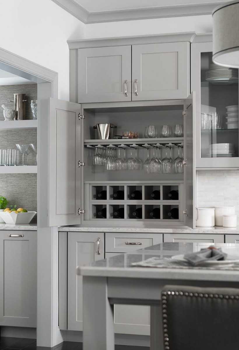 При создании классического интерьера рекомендуется присмотреться к серой кухне с золотыми ручками. Модель за счёт фурнитуры выглядит дорого, стильно. У мебели в духе минимализма внешняя фурнитура может полностью отсутствовать.
