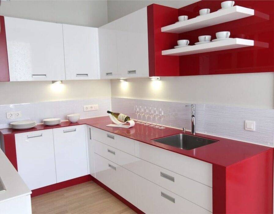 Красный и белый цвет – классический дуэт, но довольно смелое решение для кухни. Ведь белый лишь подчеркнёт яркость и дерзость красного цвета, поэтому такое сочетание лучше всего подойдёт кухням в стиле хай-тек или минимализм.