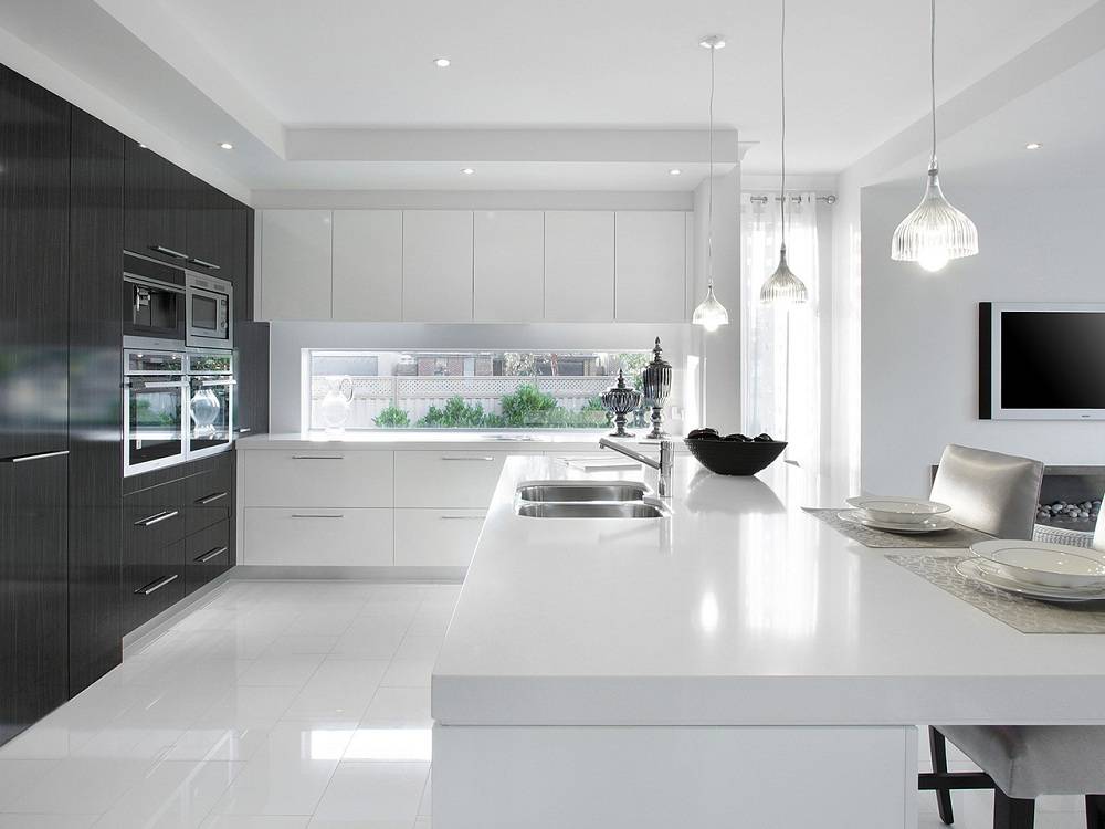 ДИЗАЙН БЕЛОЙ КУХНИ С ЧЕРНОЙ СТОЛЕШНИЦЕЙ