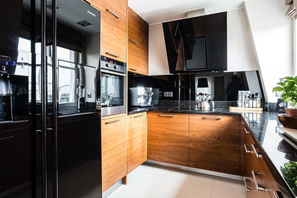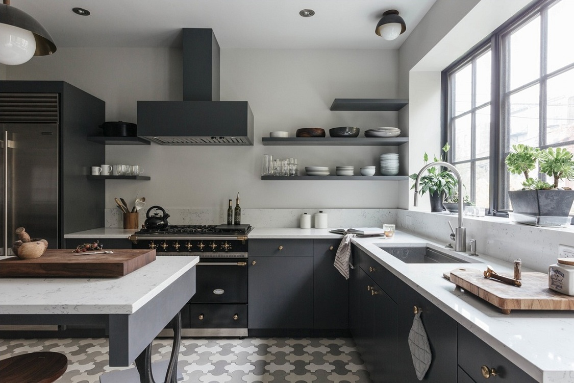 Белая кухня с черной столешницей в интерьере – бочка мёда с ложкой дёгтя? Нет!
