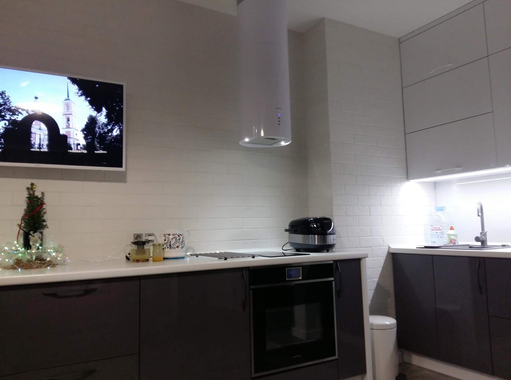 Белая кухня с серой столешницей в интерьере прекрасна. Ведь серый здорово оттеняет белизну пространства в целом и гарнитура в частности.