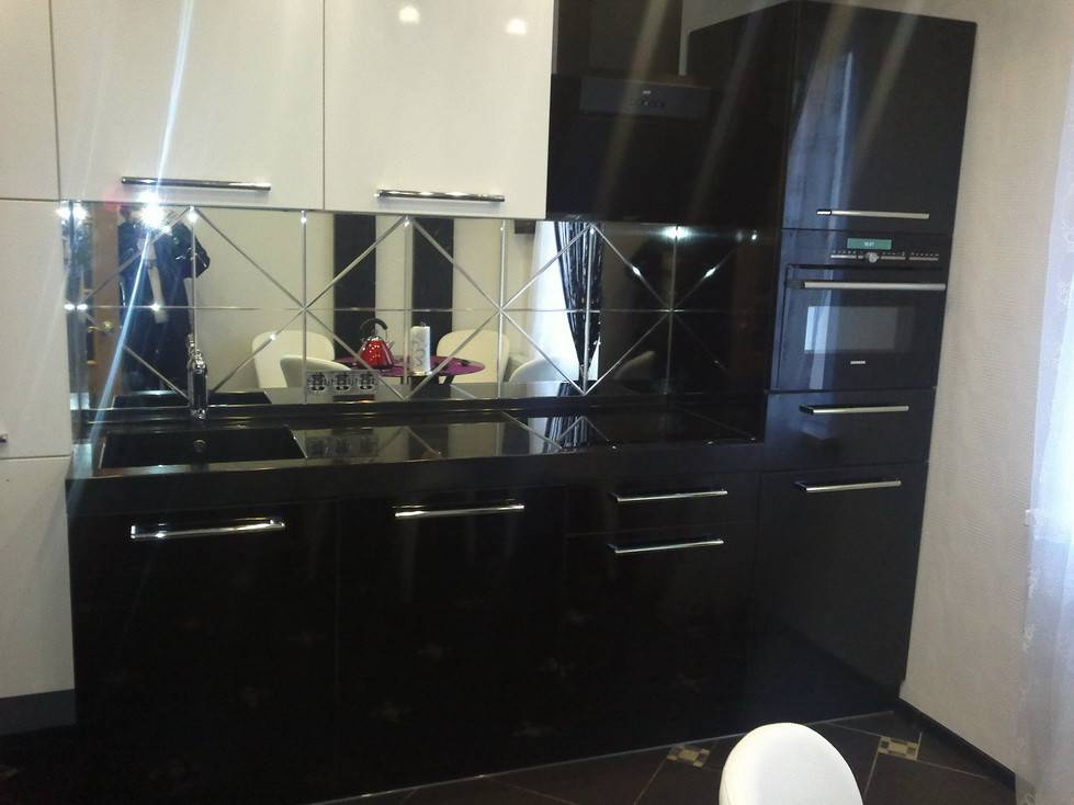 6. Визуально увеличить пространство кухни можно с помощью зеркального и стеклянного фартука. Но здесь следует помнить, что на нем сильно видны пятна и любого рода загрязнения.
