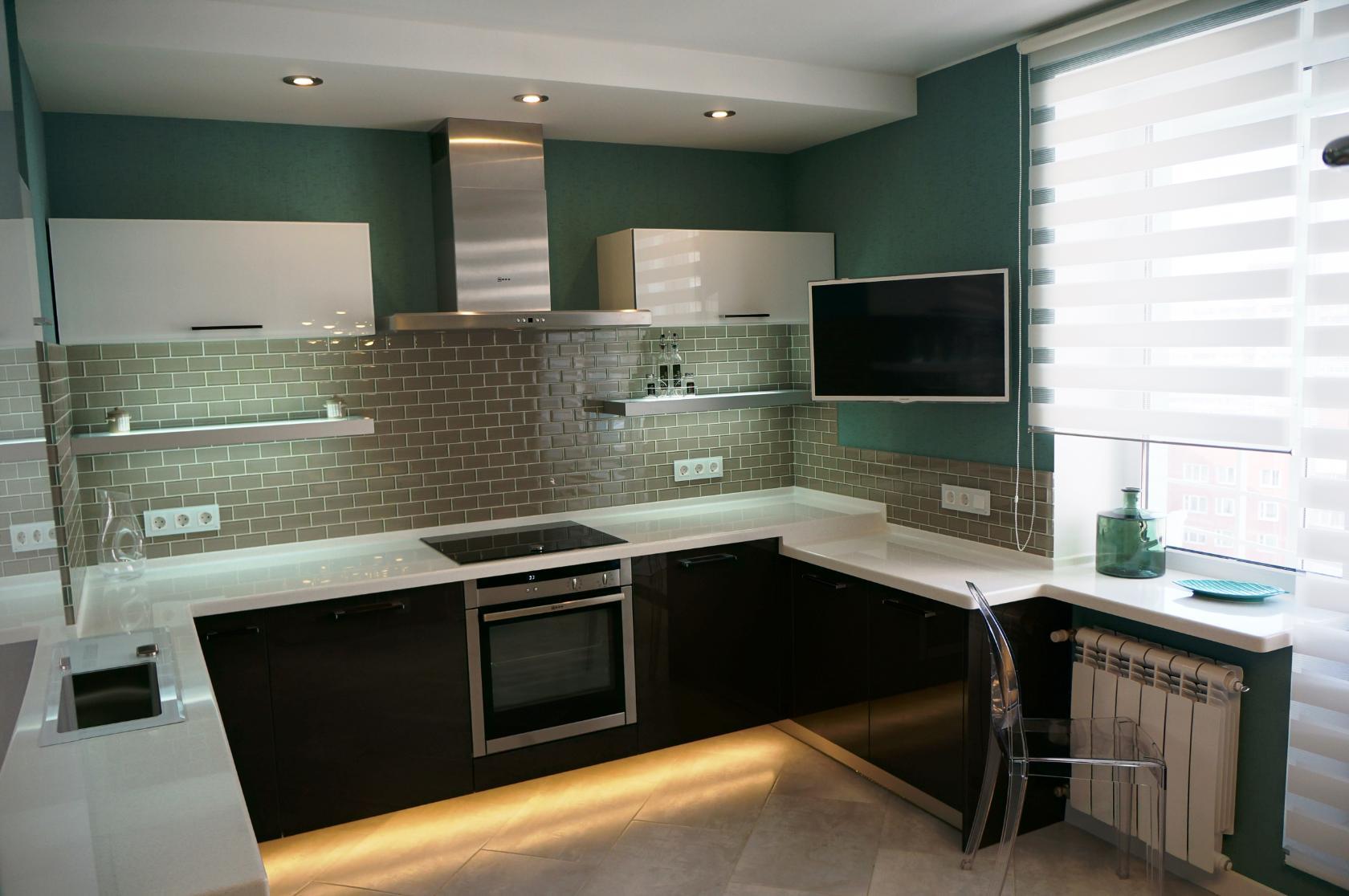 Такой выбор можно назвать универсальным, ведь дизайн получится монохромным. Рабочая поверхность при этом может быть из разных материалов – ламината, камня, ЛДСП, ДСП.