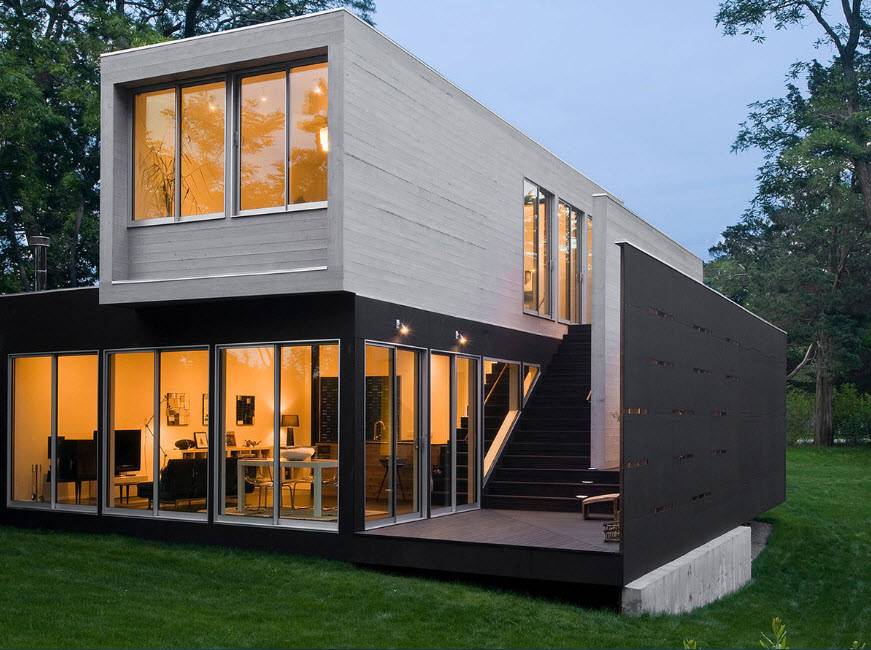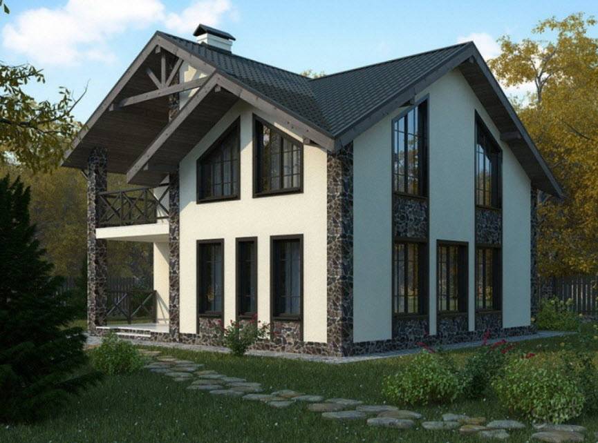Также при строительстве дома в целях экономии имеет смысл выбирать наиболее простые проекты в виде квадрата или прямоугольника без лишних террас, встроенных гаражей, балконов, выступающих форм, архитектурных изысков. Чем проще дом, тем дешевле его построить.