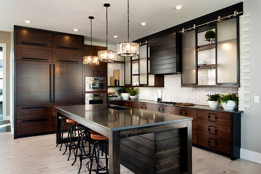 | Коричневый | Тёмное отлично сочетается со светлым. И получается, что коричневый цвет подходит для светлых кухонных гарнитуров – белого, бежевого или кремового цвета. Коричневый – хороший вариант для английского дизайна, лофта или классики. |