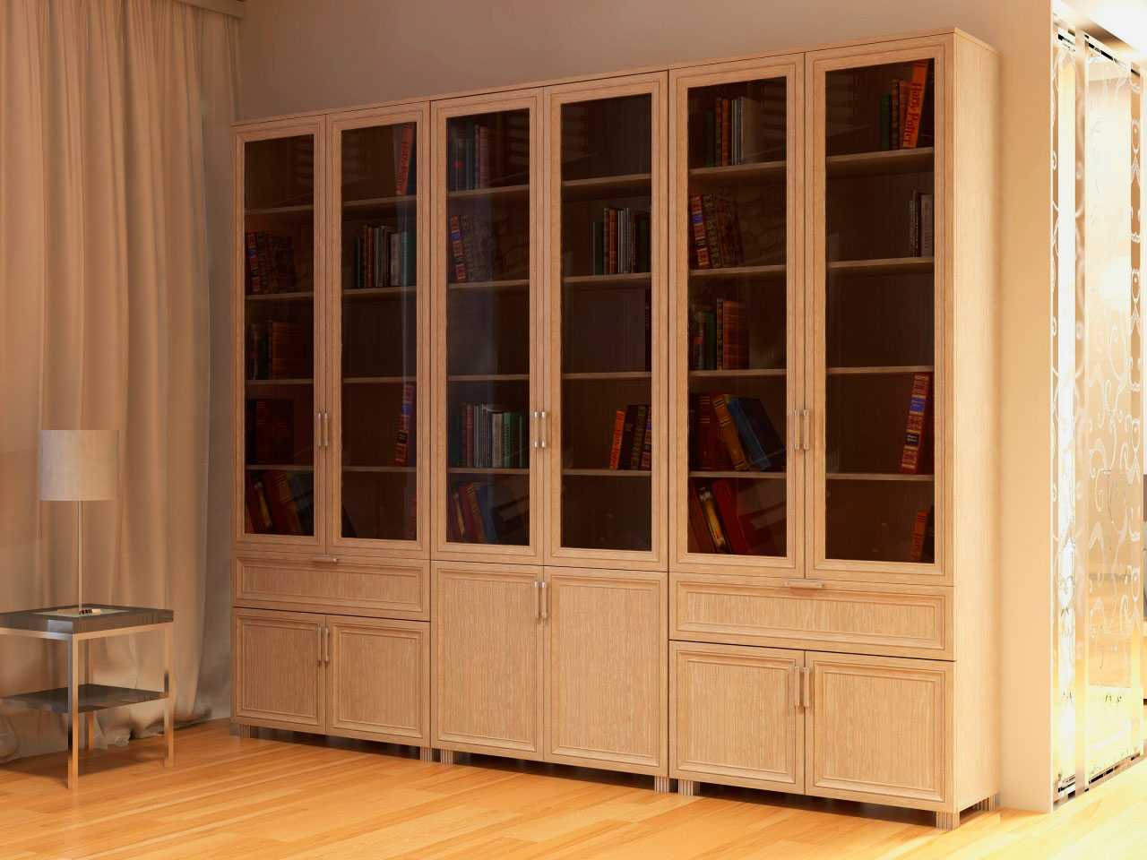 Разновидности конструкций, материалы и формы шкафов для хранения книг
