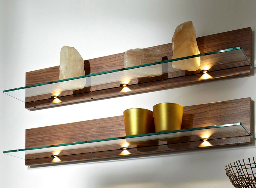 Если полочка будет с подсветкой, то проводится расчет и закупка электропроводки, светильников и выключателей.