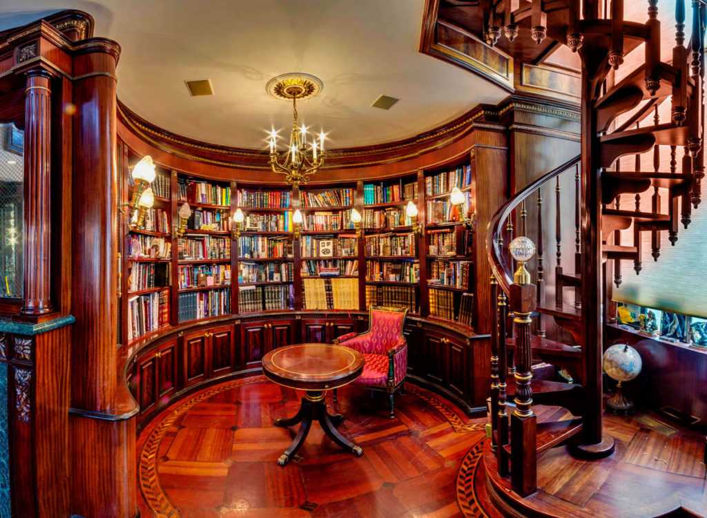 Огромный стеллаж для книг станет отличным дополнением интерьера гостиной