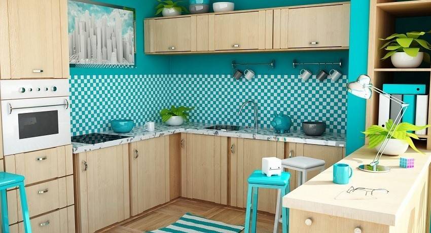 При оформлении стен кухни можно брать лишь один цвет, но декорировать его разные части широкой гаммой. Этот прием делает интерьер живым и интересным. Для точного подбора оттенков следует использовать дизайнерский цветовой круг (доступен в интернете). Контрастные сочетающиеся цвета будут размещены друг против друга.