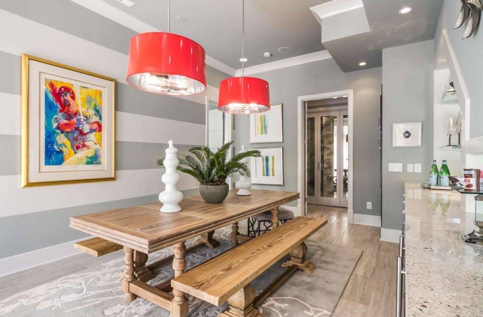 Горизонтальные полосы уместны в маленьком помещении с высокими потолками.