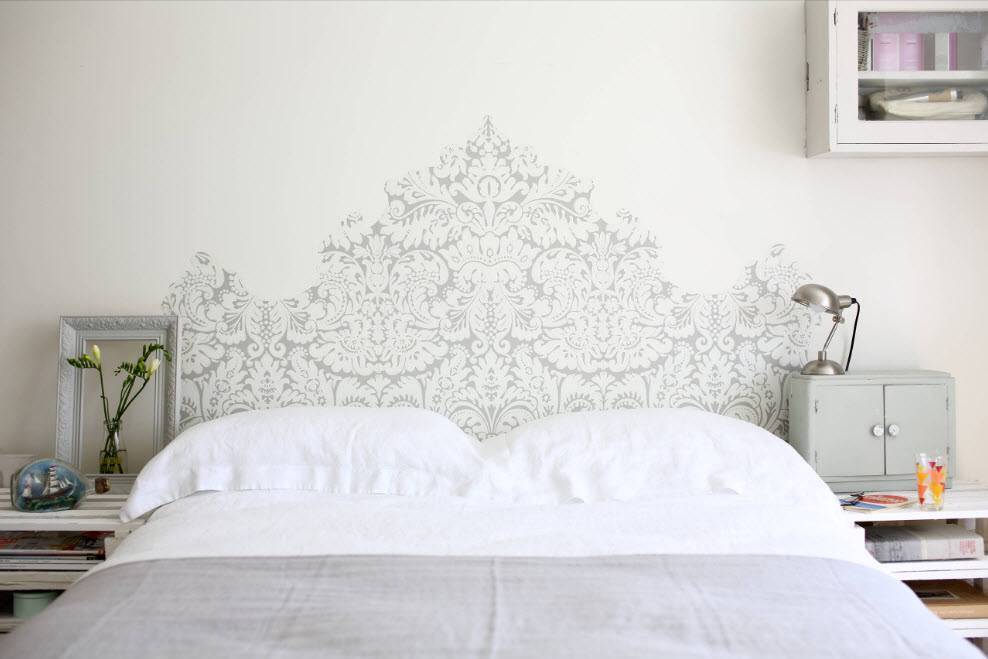 Хотите внести королевскую нотку в нейтральный интерьер? Есть одна хитрость. Нарисуйте изголовье кровати, используя трафарет.