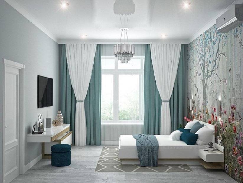 В первом случае подбираются контрастные обои и соединяются при помощи перегородки из гипсокартона, которая эффектно сглаживает переход. Во втором случае яркие обои располагаются в рабочей и игровой зоне, а простые — на кровати. При зонировании спальни ключевым моментом является ее форма и размер. Итак, для узкой спальни, характерной для «хрущевок», необходимо тщательно продумать дизайн, не превращая комнату в туннель, у которого нет конца. Поэтому фон здесь должен быть контрастным. Для спальни прямоугольной формы длинные стены клеят светлыми, а другие — темными