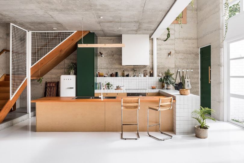 Как отделить кухонную зону от зоны отдыха? Таким разделителем послужит красивая барная стойка, раздвижная перегородка, невысокая гипсокартонная стена.
