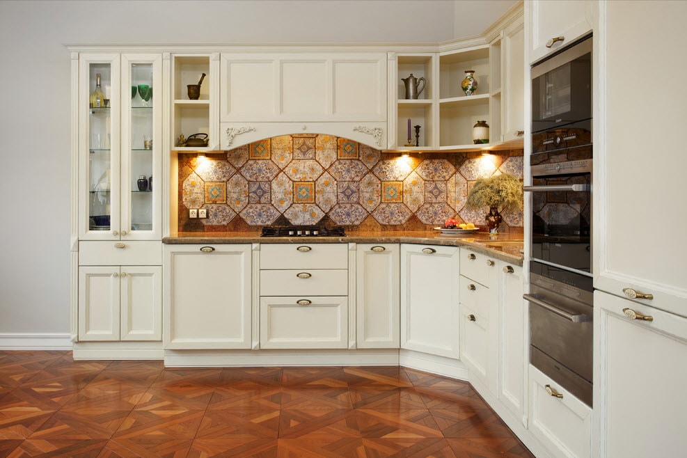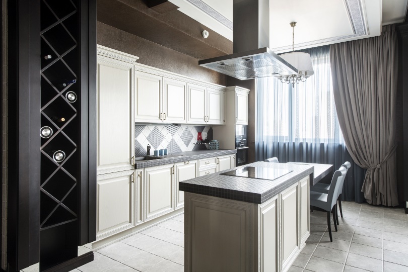 Классика подходит для просторного помещения. В маленькой или узкой кухне сложно организовать функциональное пространство, сочетающееся с роскошью.