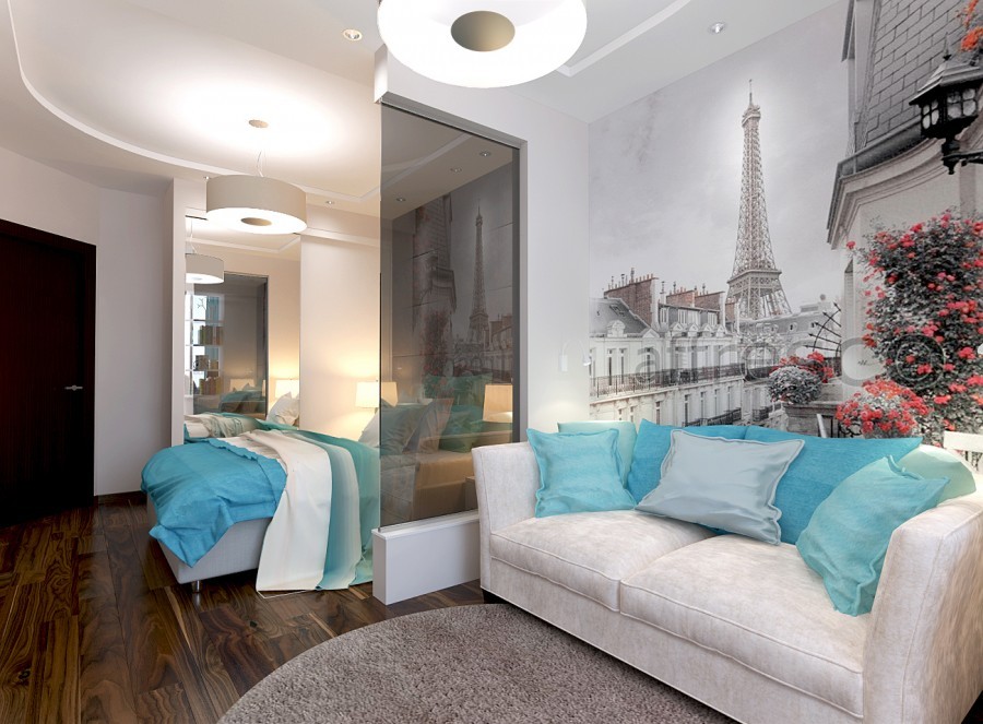 17 кв м — это не так уж и дешево при расположении на них хотя бы двух функциональных зон. При зонировании комнаты 17 кв м желательно использовать такие приемы, как: