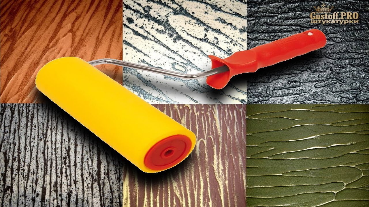 ![]() | Готовятся необходимые материалы и инструмент. Для формирования текстуры надо иметь в наличии валик характерной формы. |