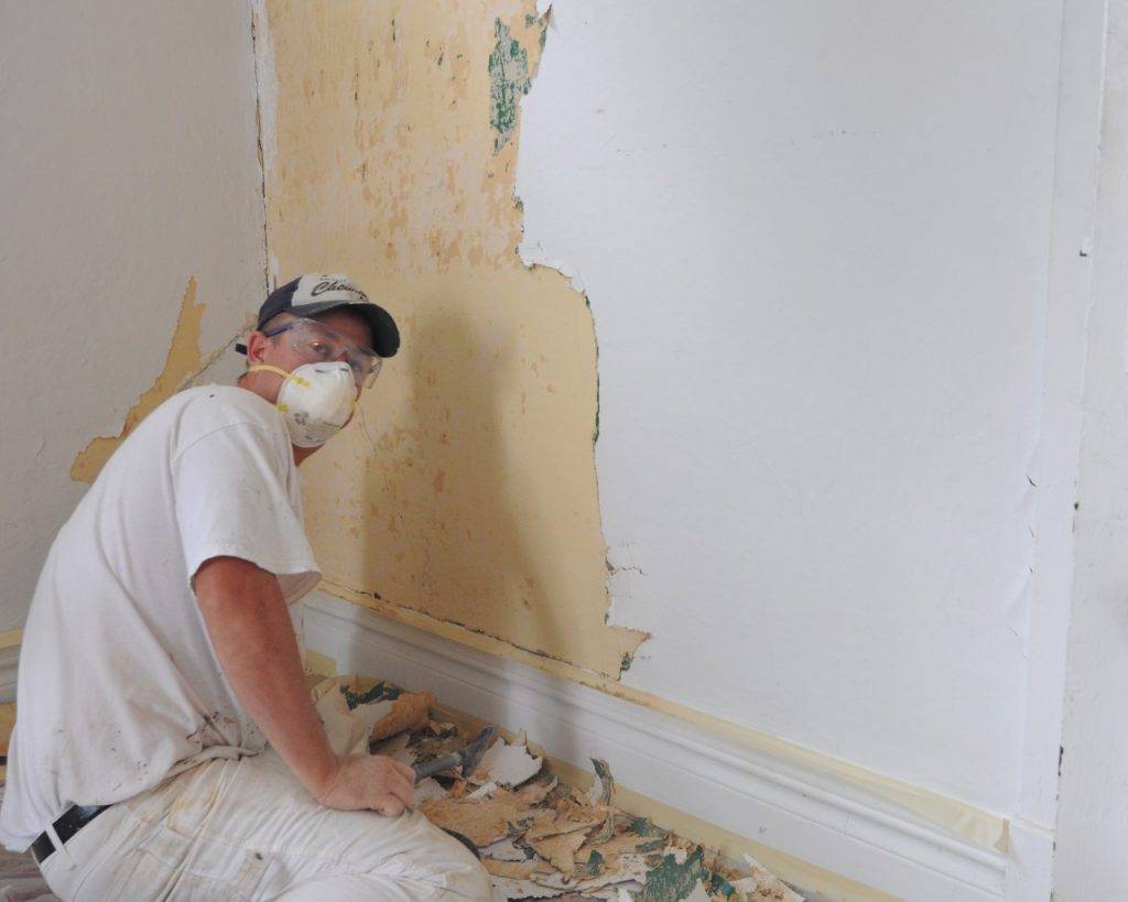 - Стена должна быть полностью очищена от старой краски, обоев, шпаклёвки и других отделочных материалов.