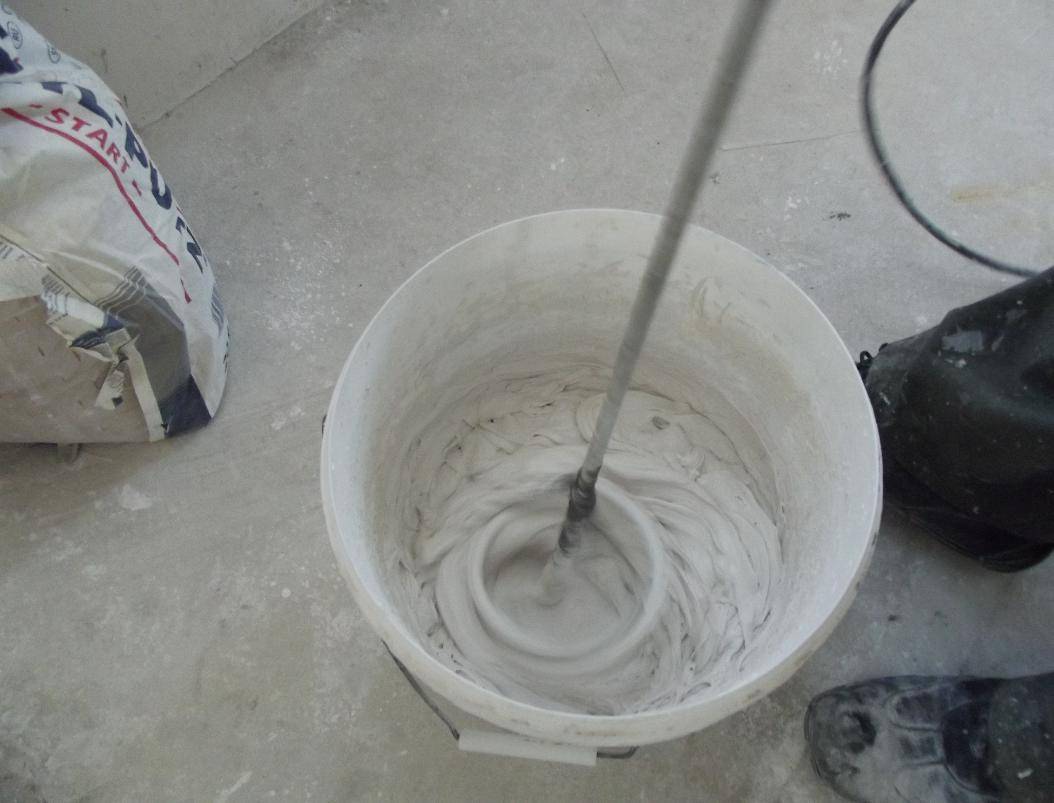 Затем необходимо подождать, пока смесь настоится. После этого ее нужно еще раз тщательно размешать при помощи специального миксера или обыкновенной дрели.