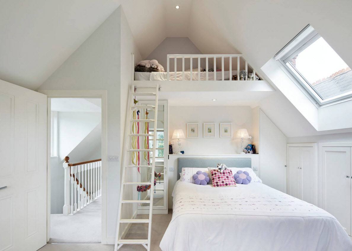 Кровати-чердаки – еще одно оптимальное решение для обустройства совместной спальни. На верхнем уровне располагается спальная зона ребенка, а внизу можно поставить двуспальный раскладывающийся диван для взрослых.