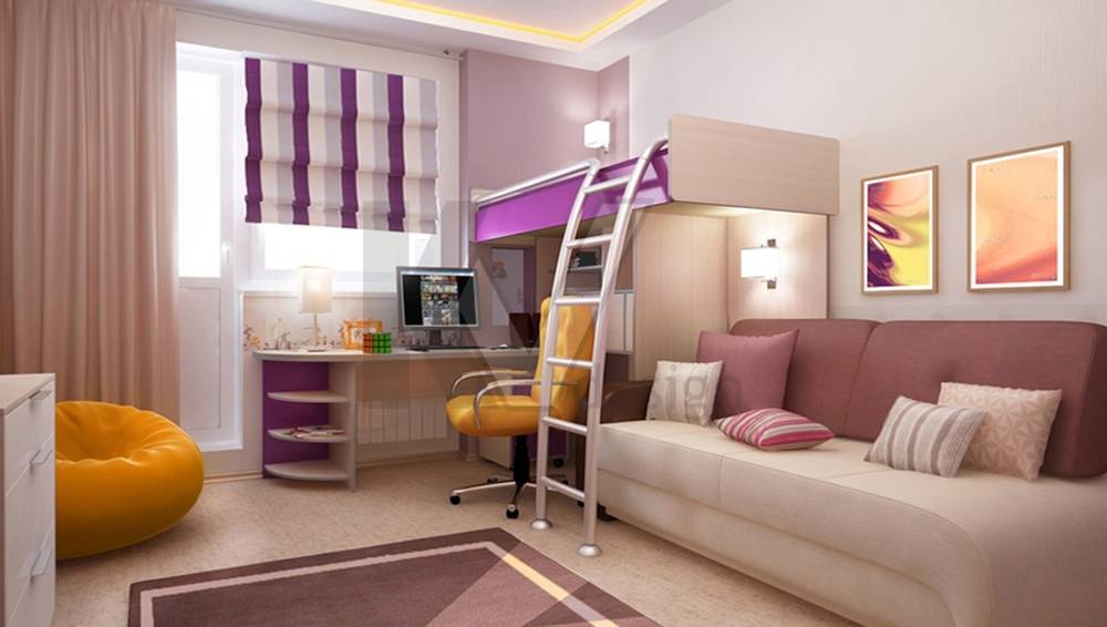 Так как, в некоторых квартирах не всегда возможно обустройство отдельной комнаты для ребенка, то в совмещенном помещении применяют функциональное зонирование, которое позволяет организовать личный уголок для каждого.