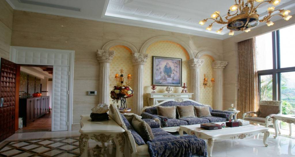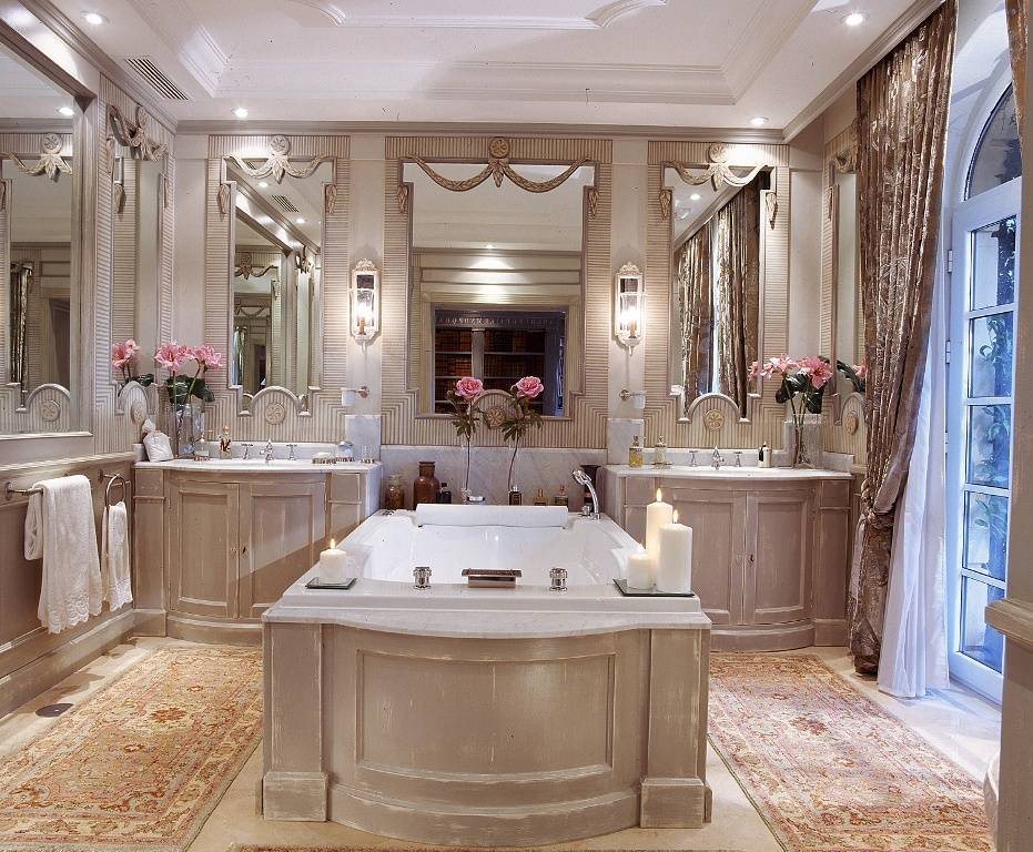 - стены должны быть оформлены в золотых и светлых оттенках с обилием зеркал и картин;