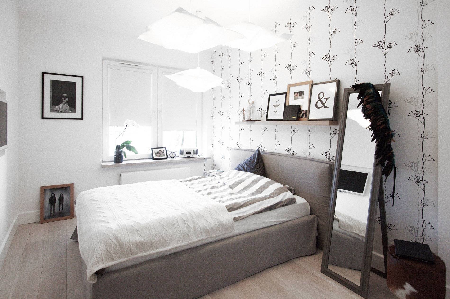 Тем, кто любит обои для отделки стен, лучше выбирать пастельные тона. Зрительно расширить пространство помогут обои светлых тонов, допускается неброский рисунок (мелкие цветочки, полоски, орнамент). Особенно это актуально для малогабаритных спален, гостиных, выполненных в скандинавском стиле.