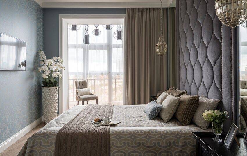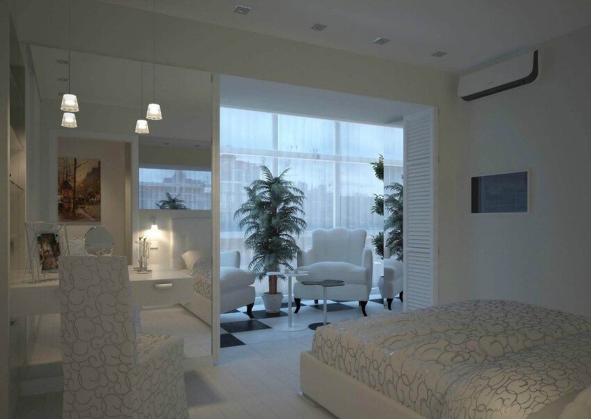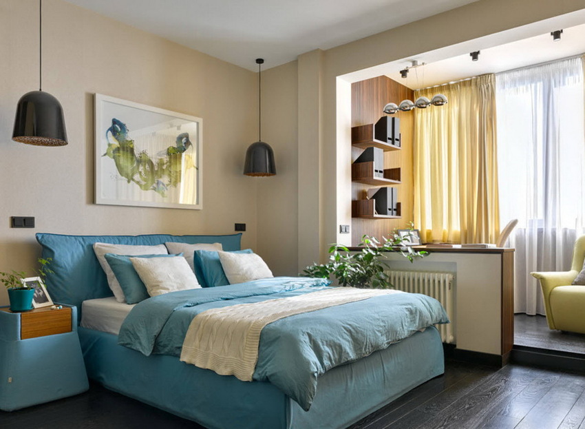Дизайн спальни 12 м2 с выходом на балкон