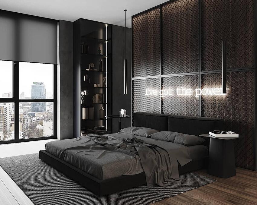 Мужская спальня, выполненная в подобном стиле, должна ориентироваться на практичность, функциональность и удобство дизайна.