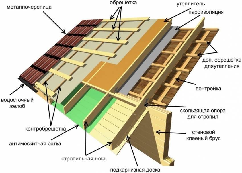 Схема кровельного пирога под металлочерепицу