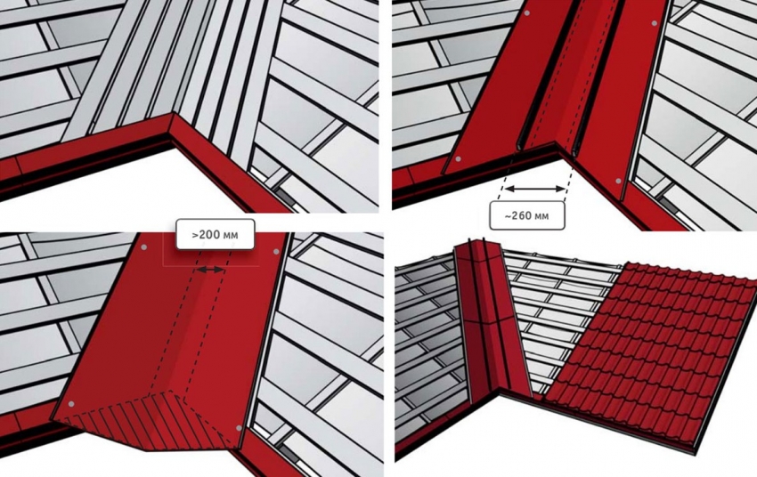 Монтаж ендовых планок включает в себя следующие действия: