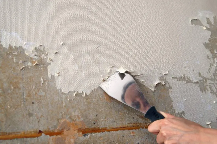 - 6. Снимать полотна необходимо с помощью чистого шпателя или хозяйственного (не столового) ножа, аккуратно поддевая и отделяя их слой за слоем. Начинать следует с верхнего края стены.