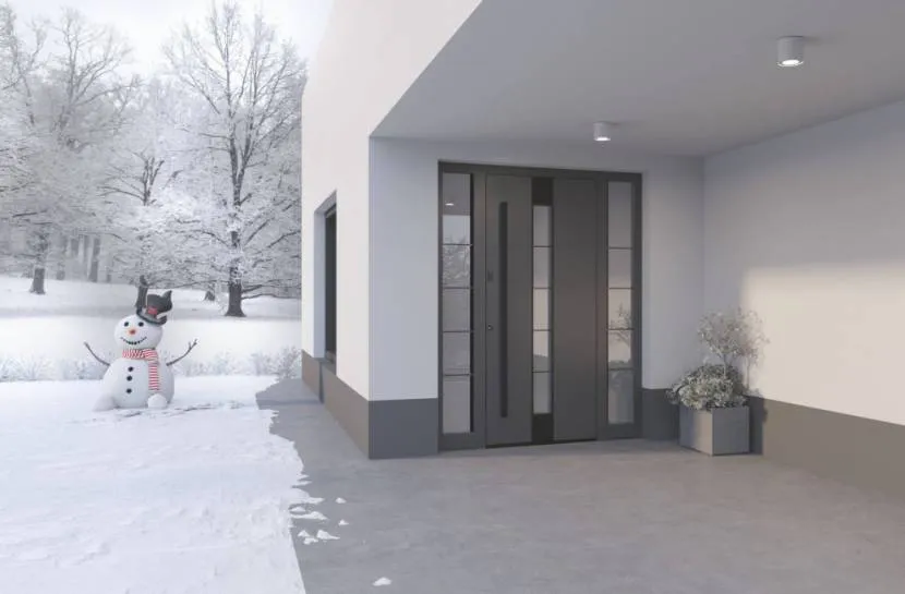 Если конструкция утепленной входной двери содержит элементы, связывающие внешнюю и внутреннюю стороны, то зимой она всегда будет холодной. Чтобы не иметь проблем с конденсатом, промерзанием и снеговой шубой, достаточно выбрать изделие, в котором использована технология терморазрыва.