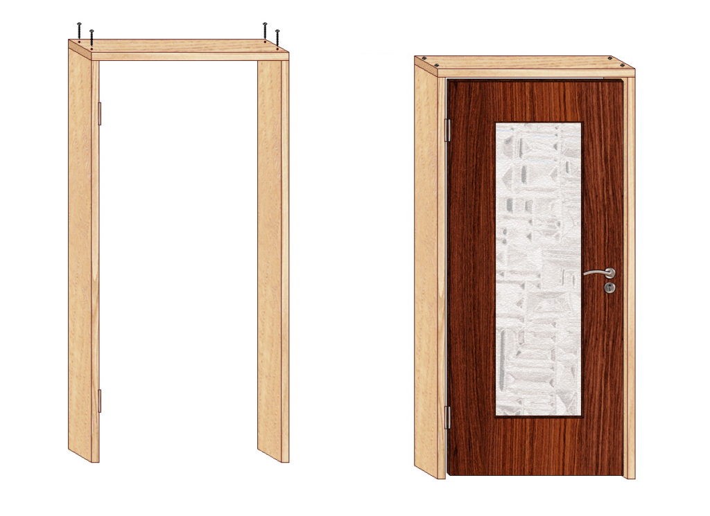 При ручной сборке короба определять параметры вертикальных стоек нужно в соответствии с высотой полотнища, толщиной горизонтальной планки, размеров зазора и порога. Параметры горизонтальной планки вычисляются по ширине двери.
