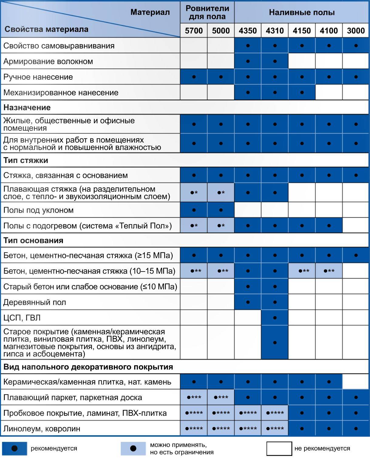 В заключении хотелось бы показать очень полезную таблицу, которая позволит быстро подобрать необходимую смесь для организации стяжки пола, на примере материалов weber.vetonit. Подобные сравнительные таблицы есть у каждого достойного производителя сухих смесей, не забывайте пользоваться ими во избежание казусов и быстрого определения нужного вам материала для стяжки пола.