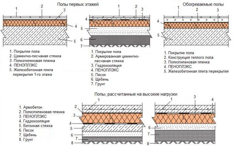 Различные варианты обустройства стяжки с использованием пеноплекса