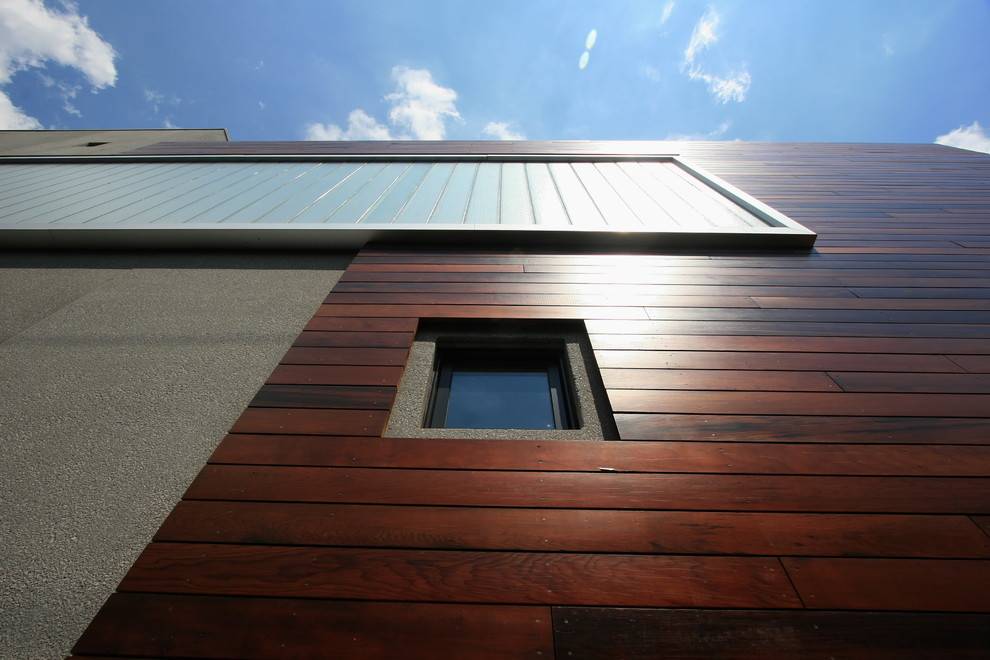 При внешней отделке его края захватываются и присоединяются к постройке алюминиевой или стальной рамкой, что архитекторы обычно называют витриной или занавесом. Здесь также виден подрамник, который охватывает весь периметр кромок, предназначенный для сбора воды и направления её в наружные стенные системы.