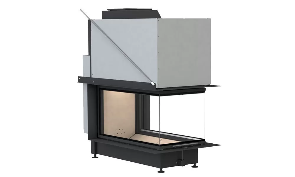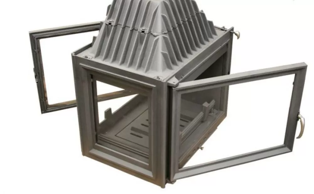 - Трехсторонний вариант каминной топки с совмещенным вариантом выполнения граней (открываемые\глухие);