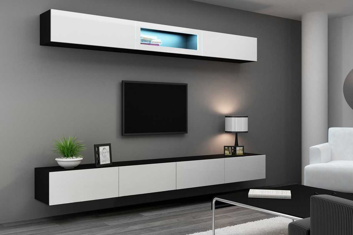 Мини. Эта мебель применяется преимущественно в залах, оформленных в современном стиле. Дизайну присуще стремление к разгрузке пространства и минимальному набору вещей. Мини-стенки отличаются компактностью и вместительностью, занимают только часть стены и включают нишу или тумбу под телевизор, небольшое количество ящиков и шкаф-купе
