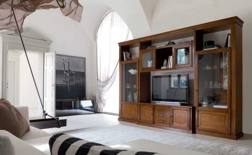 Выбирать стиль изделия нужно исходя из современных тенденций и общей отделки комнаты. Подбирайте стенку исходя из общей колористики. Сейчас особо популярны плазмы с большим и широким экраном, учитывайте это при выборе корпусной мебели – она должно соответствовать ширине и размерам ящика.