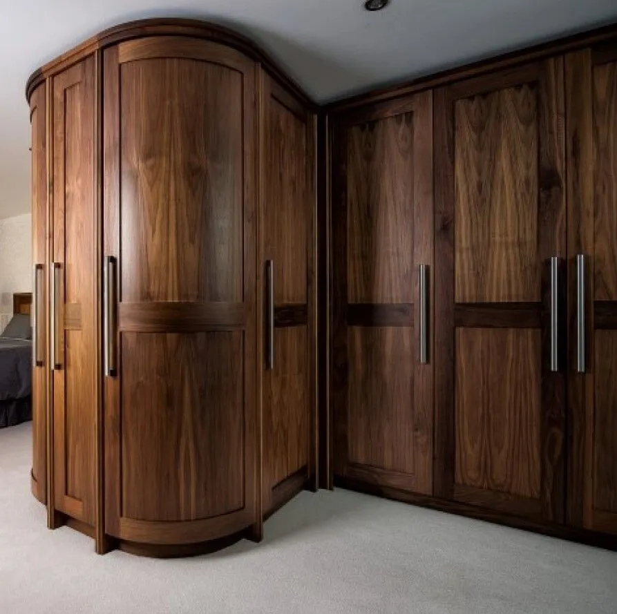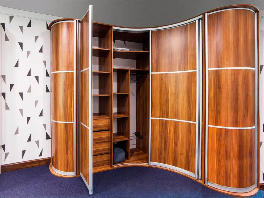 Стильно и оригинально выглядят в интерьере спальни радиусные модели шкафов