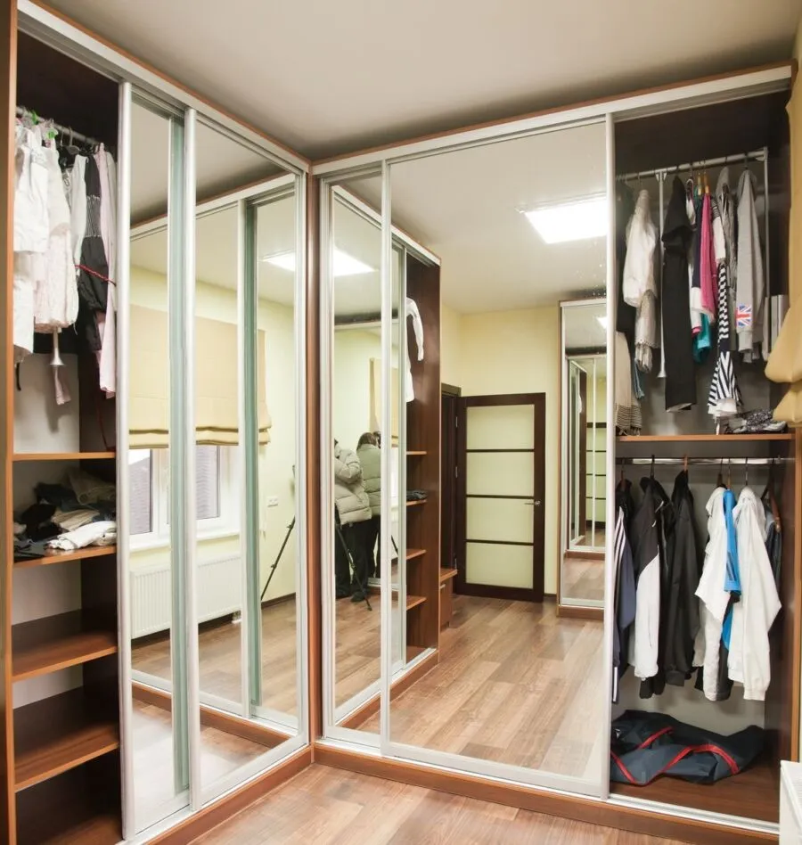 Такой шкаф идеально подходит для небольших спальных комнат. Особенность модели заключается в отсутствии задней, верхней, а иногда и боковой стенки. Шкаф устанавливается в нишу, роль которой выполняет угол помещения.