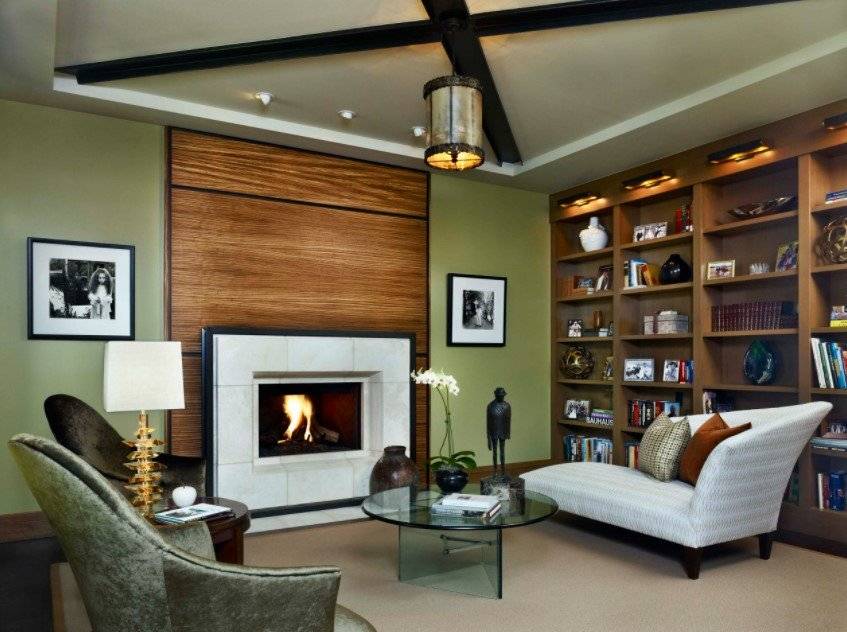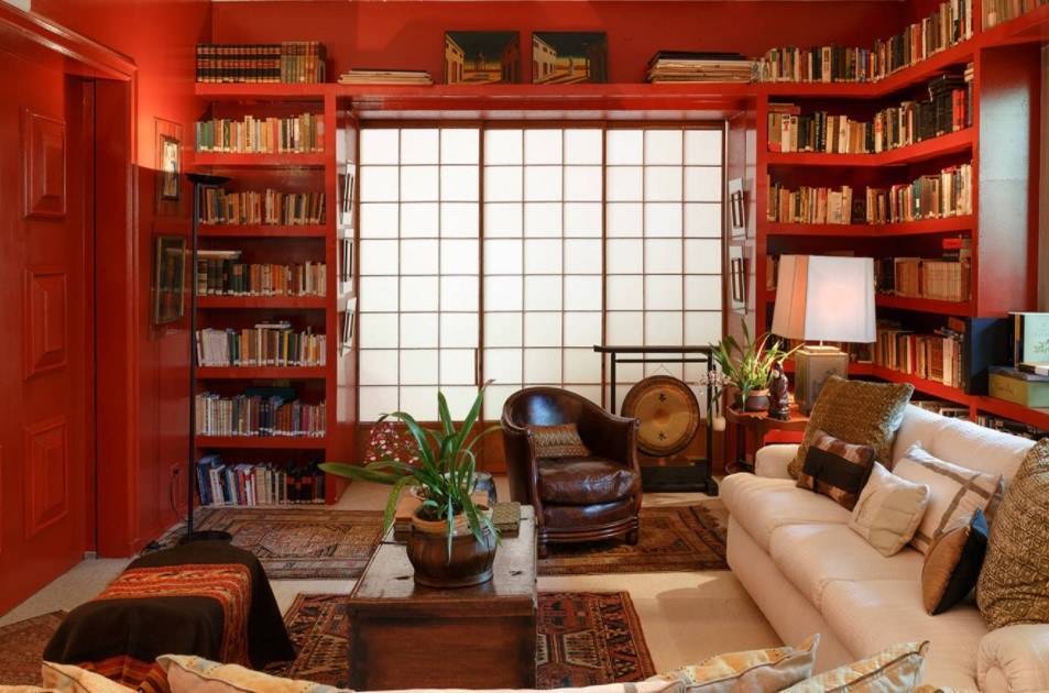 Стеллажи или шкафчики с книгами, наделяют комнату особенной атмосферой и формируют более серьезный и немного строгий дизайн.