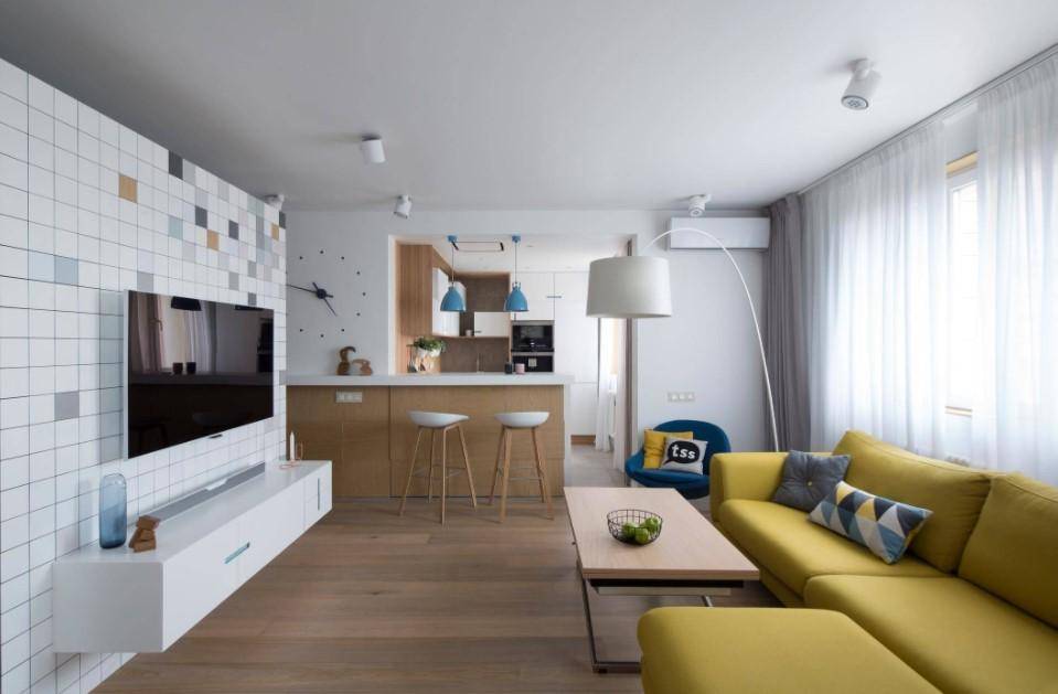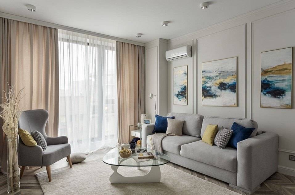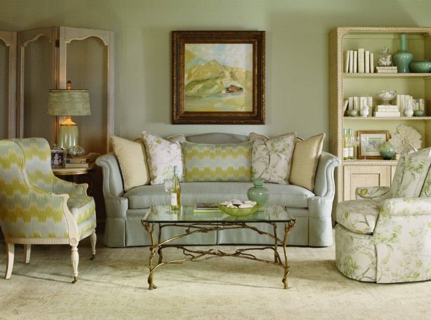 Холодные пастельные оттенки: голубой, бледно-желтый, фисташковый, нежно-розовый) часто используются с совокупности с кремовыми цветами или оттенками белого, ведь отдельно от других групп они теряют свойственные им мягкость и ненавязчивость, делая гостиную бледнее и невзрачнее. Обычно используются для оформления полок, комодов и небольших шкафов.