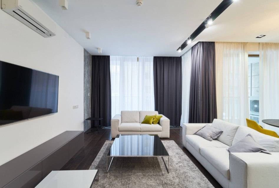 Удачные фото интерьера узкой гостиной, оформленного в стиле минимализм, хай-тек и лофт, можно подсмотреть в интернете. Они позволяют наглядно увидеть, каким должен быть общий дизайн. Никаких излишеств в отделке, мебели и декоре длинные и узкие гостиные не приемлют.