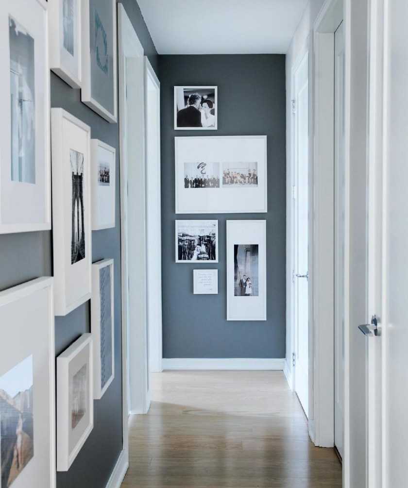 Принципы минимализма хороши для небольшого прохода. Выбирайте для отделки стен базовые оттенки, без узоров и фактур. Декор используйте по минимуму; шкафы старайтесь выбирать встроенные, чтобы не резать пространство.