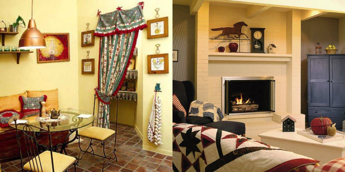 Приведём несколько примеров применения текстиля кантри в интерьере: