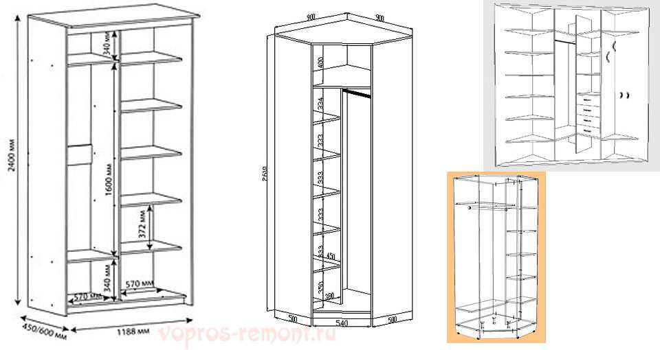 - ширина шкафа купе тоже ограничена размерами листа ДСП. Для ее увеличения в чертеж добавляют перегородки. При этом готовая конструкция будет состоять из двух или более модулей;