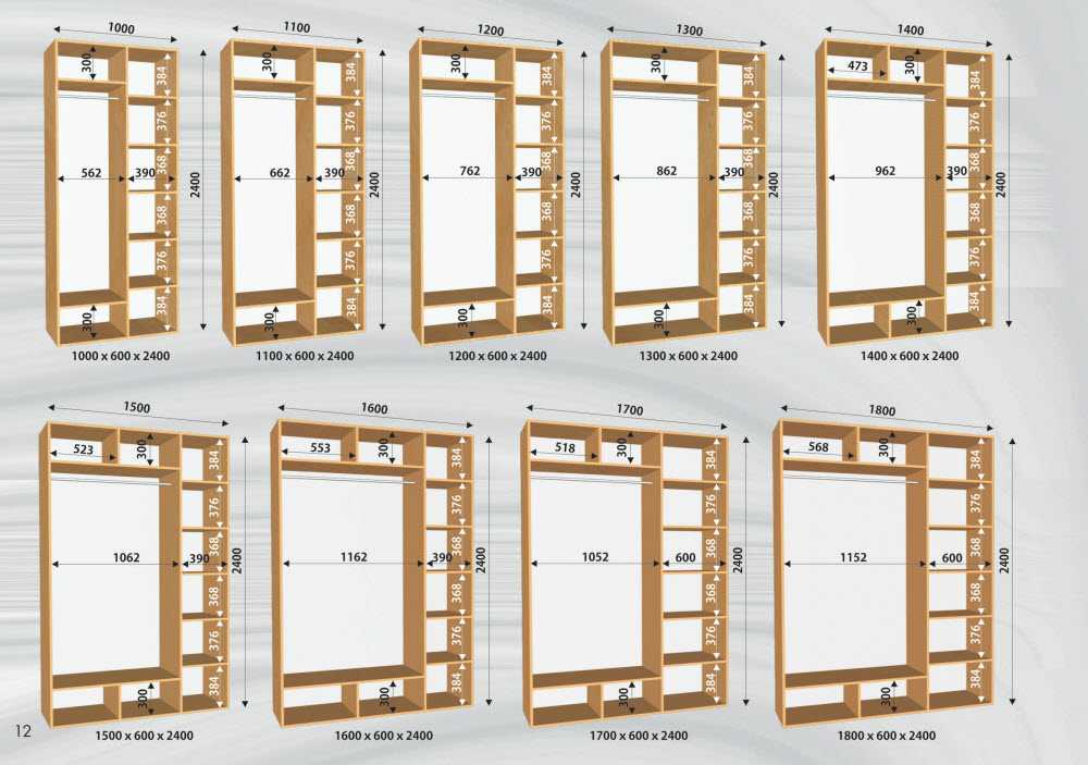 - минимальная ширина составляет 100 см. Минимальный размер дверей для шкафов купе составляет 45 см (ширина). Если сделать их уже, конструкция будет не надежной, дверцы могут попросту выпадать. Если же эта величина слишком велика, то тогда придется остановиться на модели с распашными дверьми;