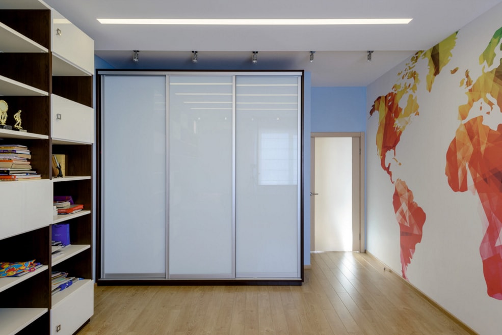 Предназначение комнаты, в которой предполагается установить шкаф купе, оказывает определенное влияние на выбор оттенков фасада